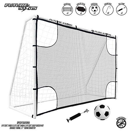 Future Stars 8ft Soccer Goal Combo Set with Shooter Tutor, Official Size 5 Soccer Ball and Pump with Pin $17.8
