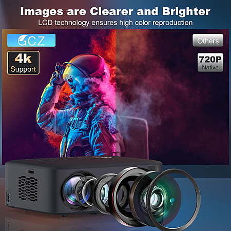 Product Description: | 【Native 1080P & Support 4K】For a better viewing experience, GCZ projector has been newly upgraded with a screen resolution of 1920*1080. Native 1080P and support 4K resolution allow you to experience a cinema-level viewing experience. You can enjoy the perfect home theater with your family and friends without leaving home! 【Newly Upgraded Bluetooth 5.2】This outdoor projector adopts a new upgraded solution. Bluetooth transmission is faster and more stable. Supports Bluetooth transmission: connect external Bluetooth speakers to enhance viewing experience. Support Bluetooth reception: Set the projector as a Bluetooth speaker, add functions other than video projection, and add new functions for users. Receive and play audio transmitted from external devices(such as mobile phones, tablets, etc.). 【Portable Home Theater】This movies projectors offer display areas ranging from a minimum of 30 inches to a maximum of 300 inches, with projection distances between 0.8-5 meters. Aspect Ratio: 4:3/16:9, Contrast Ratio: 10000:1, 400ANSI, Lamp Life: 60000 hours. Vertical keystone correction: ±50°. It's easy to set up and plays movies, TV shows, and games well. Super contrast provides a perfect visual experience, with higher color reproduction and more vivid and lifelike images. 【Widely compatible】This 1080P projector has built-in HDMI, USB, 3.5mm headphone port and TF card slot. Supports multiple input sources. Connectable devices include but are not limited to iOS/Android smartphones, tablets, PCs, TV sticks, laptops, PS3/PS4, DVD players, and USB flash drives.Due to compatibility laws for Netflix, Hulu, etc, you may not be able to stream these on your smartphone, but you can still enjoy them using a TV stick(Not included). 【Electric Focus】This 5G wifi projector has updated the focusing method. It is no longer the manual focus as before. Electric focus is more convenient. It's easy to adjust using the remote control. Ultra-fast 5G WiFi Connection: This WiFi projector has a built-in new 5G WiFi connection and supports WiFi 6, making mirroring the same screen more stable and faster, giving you a more perfect experience. Bluetooth 5.2: The newly upgraded Bluetooth function adds an acceptance mode, not only can you connect an external speaker to improve the sound quality, you can also use the projector as a speaker to connect your phone/tablet to play your favorite music. Please note that the Bluetooth function does not support mirroring. Built-in Speakers: This newly upgraded 5G wifi projector has built-in stereo surround speakers. Bringing you a new comfortable and excellent movie-watching experience. Upgraded LCD Projection Technology: Native resolution 1920x1080P, lamp life: 60000 hours, aspect ratio:16:9/4:3. High colour reproduction and good colour saturation. Gives you an immersive viewing experience when watching movies with this movie projector. Warranty: We offer our customers a 3-year guarantee and professional customer service & technical support. Please feel free to contact our customer service if you have any problems. Package List: 1* Projector 1* Remote Control ( No battery included) 1* HDMI Cable 1* User Manual 1* Power Cord 1* FAQ |