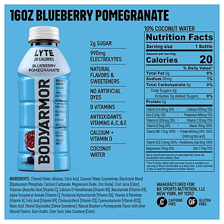 12-Pack 16-Oz BODYARMOR Lyte Sports Drink (Blueberry Pomegranate) $4.49 w/ S&S + Free Shipping w/ Prime or on $35+