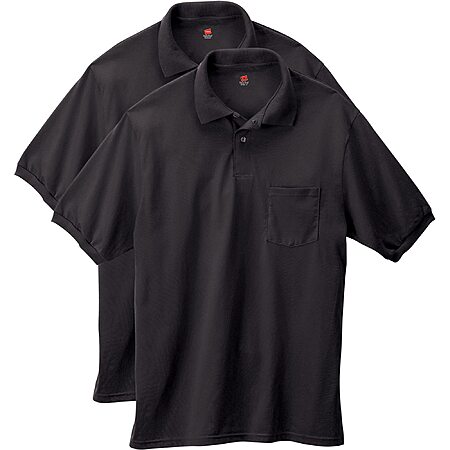 $9.86:2 Pack Hanes mens Short-sleeve Jersey Pocket polo shirts(Black&Navy&Deep Royal)