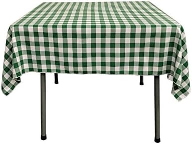 Model: LA Linen Gingham Tablecloth - Checkered Tablecloth for Parties, Picnics & More - Farmhouse Tablecloth - Spring Tablecloth - Picnic Tablecloth - Cloth Tablecloths for Square Tables - 52"x52" Green