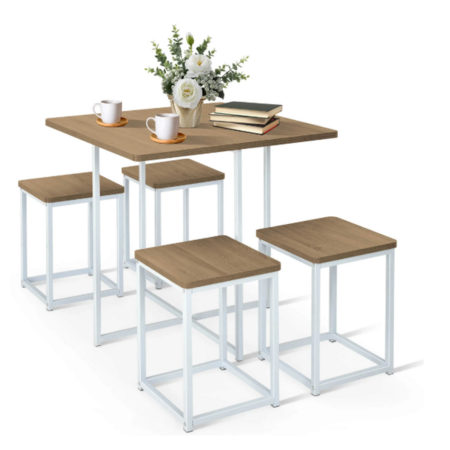 Costway 5-Piece Compact Dining Table Set w/ 4 Stools (Natural Wood/White) $88.90 + Free Shipping