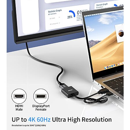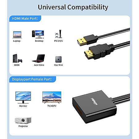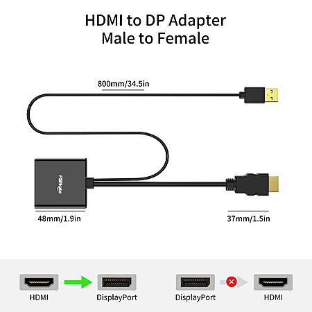 $8.5:Fairikabe HDMI to DisplayPort Adapter 4K@60Hz, HDMI 2.0 to DP 1.2 Cable for Mac Mini, Xbox, PS4/5, Raspberry Pi