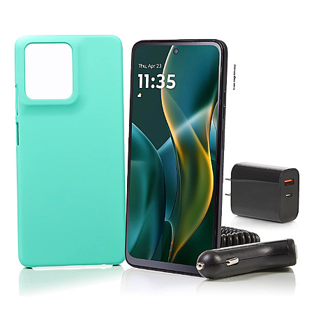 Includes Moto G XT2513V 5G smartphone, charging cable, one year of service/1,500 minutes/1,500 texts/1.5GB data; car charger, case, voucher