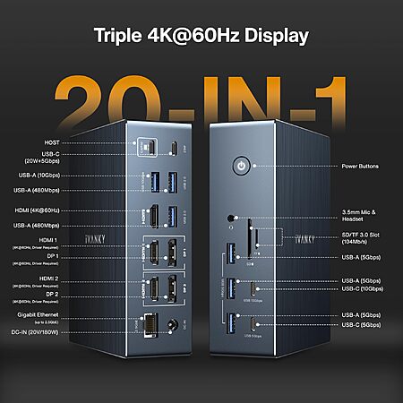iVANKY 20-in-1 FusionDock Pro 2 DisplayLink Docking Station for MacBook Pro/Air, Triple 4K@60Hz Monitor Display for M1/M2/M3/M4 Mac/Windows Laptop, 180W Power, 2.5GbE $199.99
