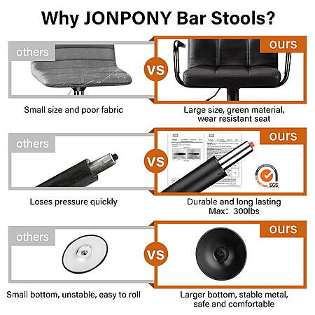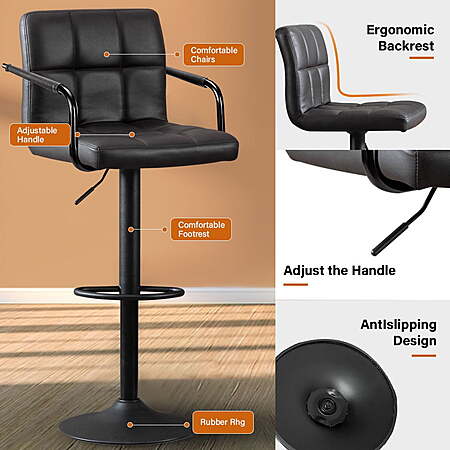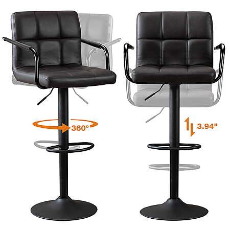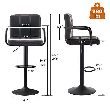 | Product Description: | Enjoy cocktails at your home bar or Sunday brunches at the kitchen island with this 2-piece bar stool set. Each modern piece features a sleek pedestal base and a thin frame made from steel with a shiny chrome finish. The low back and square seat are upholstered in faux leather with a tufted design, and filled with foam for cushioned support. An adjustable height feature, fixed arms, and a footrest keep you comfortable while you sit. Plus, these stools have a 360-swivel feature that easily lets you move from one conversation to the next. These stools accommodate up to 280 lbs. Key Features:🍹【 High-quality bar stool】The bar stool is well made, and the seat is padded with a high-tight elastic sponge and covered with breathable high -quality leather material, it relieves the back and legs and relaxes your muscles, it can bring you a pleasant experience. The steel frame is strong and durable, and with this good material, the bar chair lasts long.🍷【Turning & adjustable】The seat lift system works well and you can support your feet on the small iron rods under the seat. With a seat that can be rotated by 360 °, this high stool gives you a lot of lightness.🍸【Non-slip underside】The height-adjustable rotating stool is equipped with a lower anti-slip ring for great stability and safety, also protects your floor from scratches and wobbles or makes no noise when turning and moving.☕【Fashionable design】Bar chairs can easily meet your needs. Give your room beauty. Whether bar, living room, counter, kitchen, or bar, our bar stools give the interior bright colors and are versatile.🧃【Easy assembly】The bar chair is easy to clean waterproof PU leather and you can easily remove stains by simply wiping with a damp cloth. Our barstools is designed with a simple but stable construction so it is very easy to assemble.✔️Specifications:Swivel 360 degreesPackage includes (shipped in 1 box) :2* bar chair , 1* Instruction manualSize : set of 2Padded seat cushion & backrestPremium PU leather and MetalSeat Dimensions 17.3"(L) x 14.2"(W)Rubber ring bottom to prevent the floor from scratchingNew Stylish Modern design for more comfortQuadrate cushion, filled with high-density stereotypes spongesPneumatic adjustable height easy and safe for adjustmentThe base and footrest, constructed of chromed steel, durable and stable❓NOTE:Each box only has 2 bar stools in it, if you have more than 2 chair it will be shipped in more boxes and may not arrive at the same time, please be patient.Please understand an error of 1-3cm caused by manual measurement!You need to assemble it by yourself!Regularly check if all the assembled accessories are fastened and reinforce them for necessary! Key Features: 🍹【 High-quality bar stool】 The bar stool is well made, and the seat is padded with a high-tight elastic sponge and covered with breathable high -quality leather material, it relieves the back and legs and relaxes your muscles, it can bring you a pleasant experience. The steel frame is strong and durable, and with this good material, the bar chair lasts long. 🍷【Turning & adjustable】 The seat lift system works well and you can support your feet on the small iron rods under the seat. With a seat that can be rotated by 360 °, this high stool gives you a lot of lightness. 🍸【Non-slip underside】 The height-adjustable rotating stool is equipped with a lower anti-slip ring for great stability and safety, also protects your floor from scratches and wobbles or makes no noise when turning and moving. ☕【Fashionable design】 Bar chairs can easily meet your needs. Give your room beauty. Whether bar, living room, counter, kitchen, or bar, our bar stools give the interior bright colors and are versatile. 🧃【Easy assembly】 The bar chair is easy to clean waterproof PU leather and you can easily remove stains by simply wiping with a damp cloth. Our barstools is designed with a simple but stable construction so it is very easy to assemble. ✔️Specifications: Swivel 360 degrees Package includes (shipped in 1 box) :2* bar chair , 1* Instruction manual Size : set of 2 Padded seat cushion & backrest Premium PU leather and Metal Seat Dimensions 17.3"(L) x 14.2"(W) Rubber ring bottom to prevent the floor from scratching New Stylish Modern design for more comfort Quadrate cushion, filled with high-density stereotypes sponges Pneumatic adjustable height easy and safe for adjustment The base and footrest, constructed of chromed steel, durable and stable ❓NOTE: Each box only has 2 bar stools in it, if you have more than 2 chair it will be shipped in more boxes and may not arrive at the same time, please be patient. Please understand an error of 1-3cm caused by manual measurement! You need to assemble it by yourself! Regularly check if all the assembled accessories are fastened and reinforce them for necessary! |