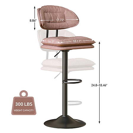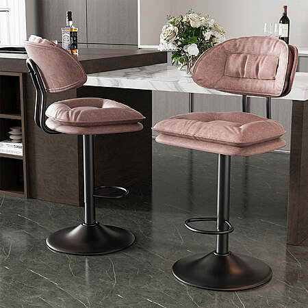 | Product Description: | Upgrade your home with these Swivel Bar Stools, designed for both style and comfort. Featuring an ergonomic backrest, thick cushioned seating, and skin-friendly fabric upholstery, these stools provide exceptional lumbar support for a cozy sitting experience. The 360° swivel function and adjustable height allow for flexible use in kitchens, dining rooms, and bars. Built with an SGS-certified gas lift, FSC-certified wood frame, and a sturdy metal base, they ensure durability and stability, supporting up to 300 lbs. Easy to assemble with included instructions, these bar stools seamlessly blend into any modern or mid-century décor. ✅ 【Ergonomic & Elegant Design】These bar stools feature an ergonomic design with a broad backrest for superior lumbar support, ensuring a comfortable seating experience. Their stylish look effortlessly enhances any kitchen island, counter, or bar area, complementing both modern and mid-century décor. ✅ 【Soft & Comfortable Seating】Upholstered with skin-friendly fabric, these stools have thickened cushions and padded backrests for ultimate comfort. The plush seating provides excellent support, making them ideal for extended sitting. ✅ 【360° Swivel & Adjustable Height】Designed for versatility, these counter stools offer smooth 360-degree rotation and an adjustable height feature, allowing you to customize them for various table heights and seating preferences. ✅ 【Durable & Sturdy Construction】Built with an SGS-certified gas lift, FSC-certified wood frame, and a solid pedestal base, these bar chairs support up to 300 lbs. The sturdy metal frame ensures long-lasting durability, while the rubber ring at the base protects floors from scratches. ✅ 【Easy Assembly & Customer Support】All necessary hardware and instructions are included for hassle-free assembly. If you have any questions, our dedicated support team is always ready to assist you. |
