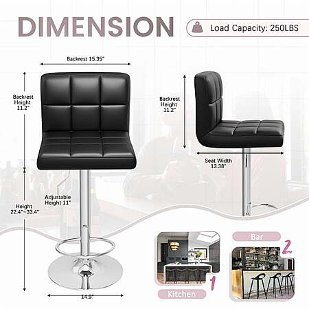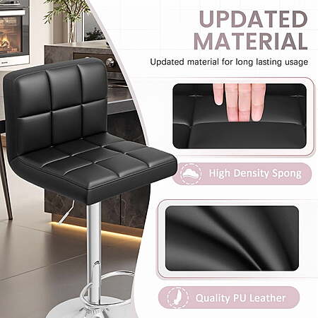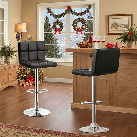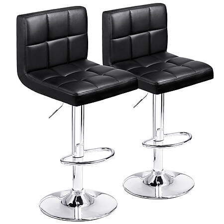 Homall Bar Stools Set of 2 Modern PU Leather Hydraulic Kitchen Counter Square Island Height Adjustable Swivel Barstool with Back, Black $79.99