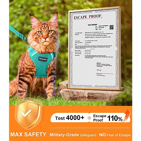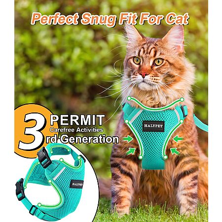 Halypet Cat Harness & Leash Set (Green, XS 4-6lb) $9.51 + Free Shipping w/ Prime or on $35+