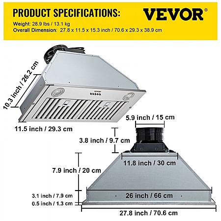 Details: - Powerful But Quiet: The main body of our built-in range hood is made of stainless steel, with ETL certification, providing high strength and durability. It is rust-proof and corrosion-proof for easy cleaning. The galvanized motor offers powerful suction with a maximum of 800CFM speed. It can easily and effectively take away large amounts of smoke and oil grease from the air in your kitchen. Meanwhile, the noise level at the highest speed is low at 62dB, bringing you a quiet cooking zone.