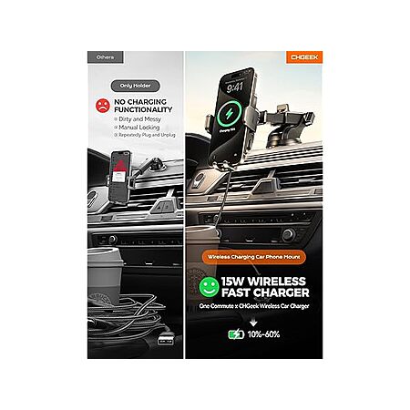 CHGeek 15W Wireless Charging Car Phone Holder Mount $9.99 + Free Shipping w/ Prime