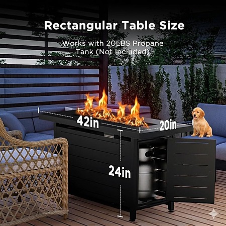 Ciays 42" 60,000 BTU Gas Propane Fire Pit with Steel Lid & Lava Rock $169.99 + Free Shipping