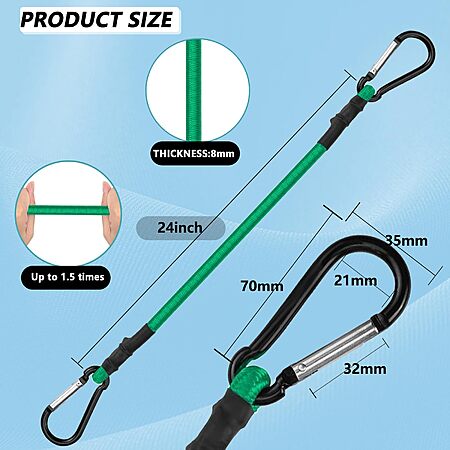 24 Inch Bungee Cord with Aluminum Alloy Hook, 4 Pack Strong Elastic Rope for Outdoor Tent, Luggage Rack, Camping, Cargo, Bike,Storage. (24 Inch -Green) $4.49