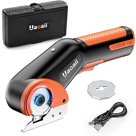 Uaoaii Electric Rechargeable Cordless Rotary Scissors w/ Replacement Blade & Storage Case $13.99 + Free Shipping w/ Prime or on $35+