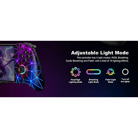 - 17-color adjustable RGB lighting w/ 4 adjustable modes: off, static, breathing or flashing