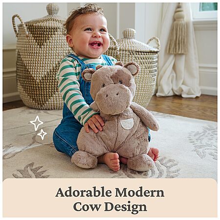 - COW PLUSH FOR BABIES: This understuffed, delightfully floppy mocha-colored cow is made from premium soft plush with embroidered accents. Quilted jersey textures on its feet and ears promote tactile play and mimic the feel of a cozy security blanket