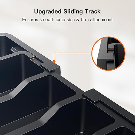 Model: Pipishell Silverware Drawer Organizer, Expandable BPA-Free Kitchen Utensil Storage Tray for Forks, Spoons and Knives, Black Plastic Cutlery Holder