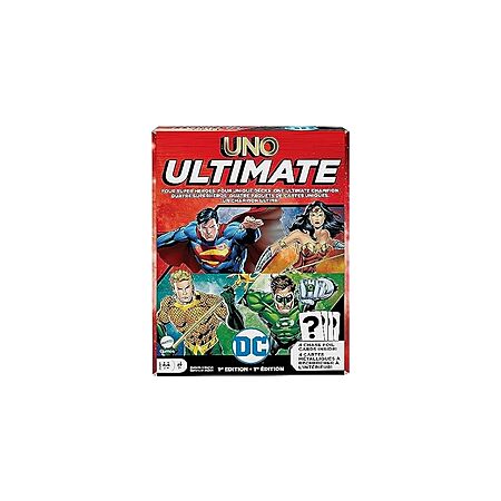 Mattel Games UNO Ultimate DC Card Game for Kids, Fans, Adults & Family Night with 4 Character Decks, 4 Collectible Foil Cards & Special Rules $2.99