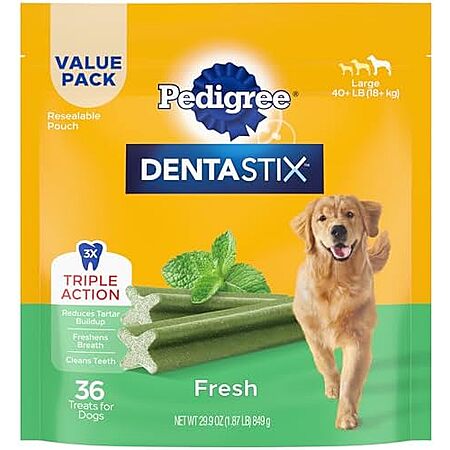 Amazon[amazon.com] has 1.87-Pound Pedigree Dentastix Large Breed Dog Treats for $11.41 - 5% when you check out via Subscribe & Save = $10.84. Shipping is free with Prime or on $35+ orders.