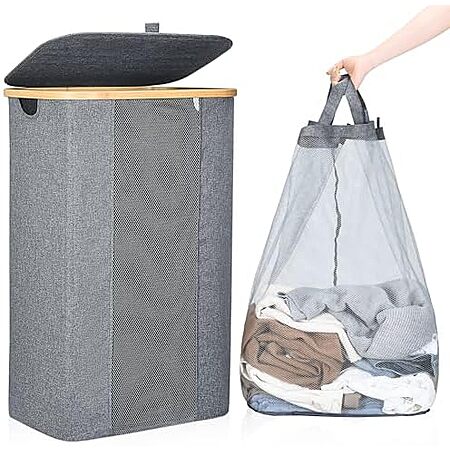 $14.99*: 100L Elong Home Laundry Basket w/ Removable Liner & Lid (Grey or Beige) at Amazon