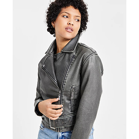 Jou Jou Juniors' Distressed Asymmetric Moto Jacket (Sizes: XS-XL) $19.66 & More + Free Pickup at Macys or Free Shipping on $39+