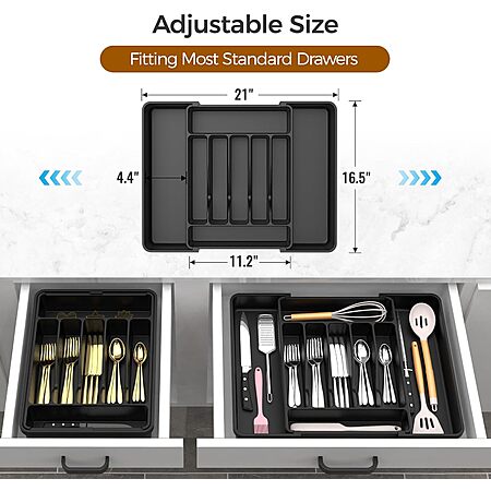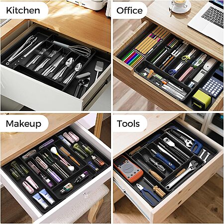 ukeetap Expandable Silverware Drawer Organizer (Extra Large, Black) $2.99 + Free Shipping w/ Prime or on $35+