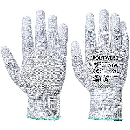 $1.99: Portwest A198 Antistatic Safety Glove with PU Non Slip Fingertip Coating ANSI, Medium at Amazon
