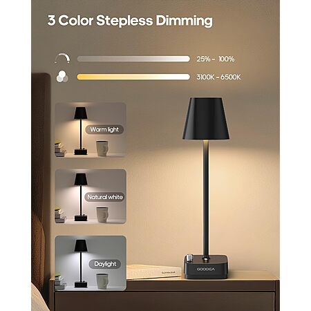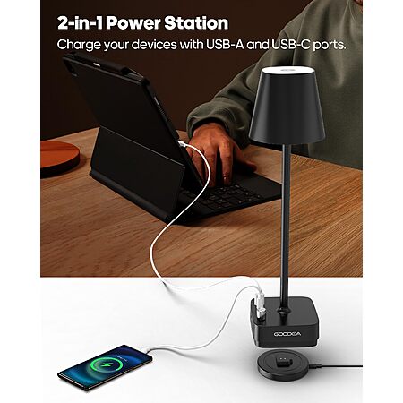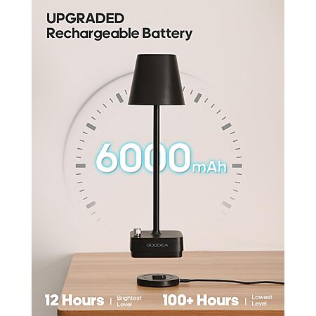 2-Pack Cordless Table Lamp w/ Charging Base, Rechargeable 6000mAh Battery & 3 Color Dimmable Portable $14.99 + Free Shipping w/ Prime or on $35+ $15