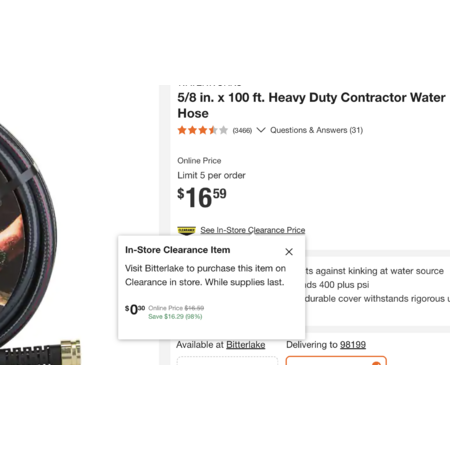 YMMV: Waterworks 5/8 in. x 100 ft. Heavy Duty Contractor Water Hose - $0.30 at select Home Depot stores