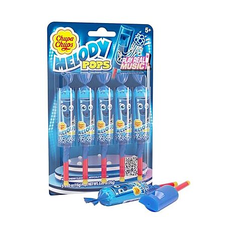 Model: Chupa Chups Melody Pop, Halloween Trick or Treat Candy, Blue Raspberry Flavor, Whistle Lollipops, Individually Wrapped Candy Suckers, 5 Count Pack