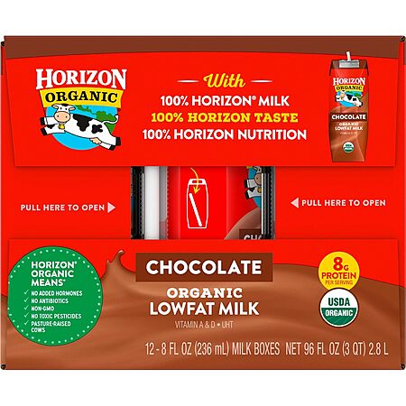 Model: Horizon Organic Shelf Stable 1% Lowfat Chocolate Milk Boxes, 8 fl oz, 12 Count - 8g Protein per Serving, USDA Organic UHT from Pasture-Raised Cows, Ready to Drink for Lunchbox, Travel, or On-the-Go, No Refrigeration Needed