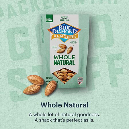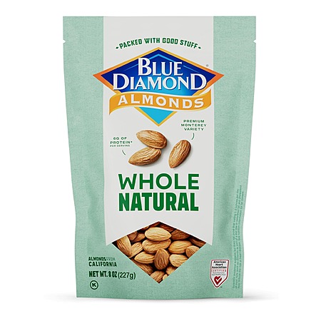 Blue Diamond Almonds, Premium Whole Natural Snack Nuts Non GMO Perfect for Healthy Snacking with 8 Grams of Protein, 8 Ounce (Pack of 1)~$3.62 With S&S @ Amazon