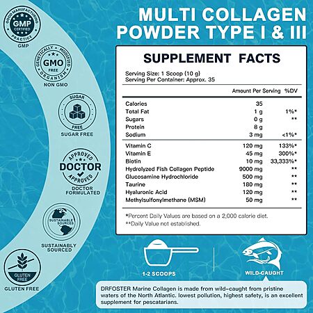 Drfoster nutrition via Amazon [amazon.com] has 12.35-Oz Dr.Foster Marine Collagen Peptides Powder (Hydrolyzed Type I & III, Unflavored, 35-Servings) on sale for $17.48 - 50% off when you visit the promo code page to activate [amazon.com] (or apply code WPYDWBV3 at checkout) = $8.74. Shipping is free w/ Prime or on orders $35+.
