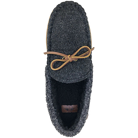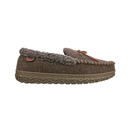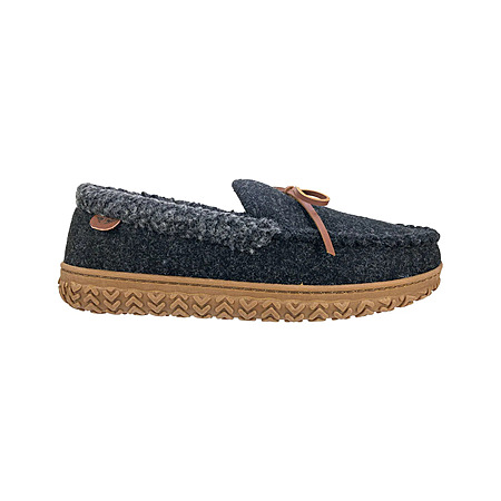 Men's Rolled Collar Wool Moccasin Slippers (9-13, Grey) for