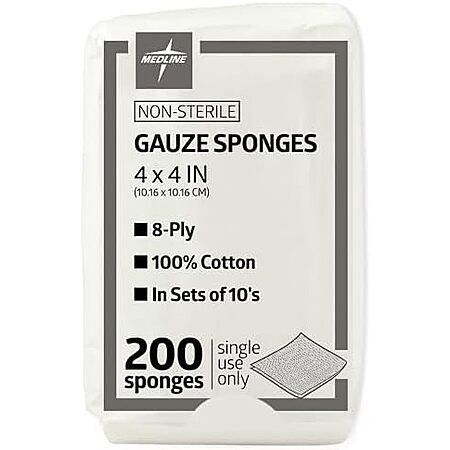 $3.32*: 200-Pack Medline 4 x 4 inch Gauze Sponges, 100% Cotton at Amazon