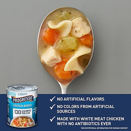 Amazon [amazon.com] has 12-Pack 18.5-Oz Progresso Light Soup (Chicken Noodle) for $9.18 - 5% when you check out via Subscribe & Save = $8.72. Shipping is free with Prime or on $35+