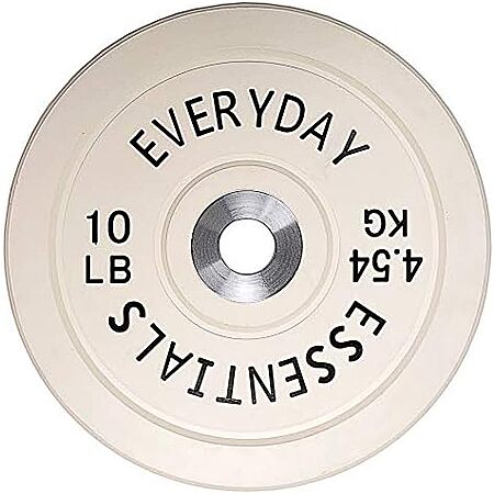 Amazon[amazon.com] has 10-lbs BalanceFrom Color Coded Olympic Bumper Weight Plate w/ Steel Hub (Single) for $9.58. Shipping is free with Prime or on $35+ orders.
