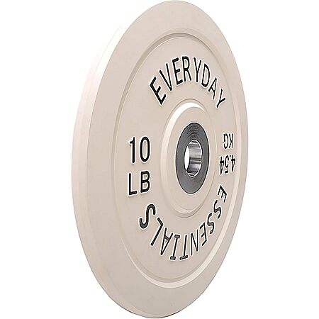 Amazon[amazon.com] has 10-lbs BalanceFrom Color Coded Olympic Bumper Weight Plate w/ Steel Hub (Single) for $9.58. Shipping is free with Prime or on $35+ orders.