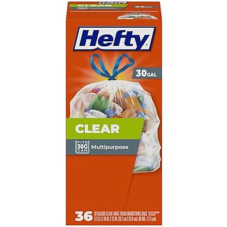 [S&S] $3.97: 36-Count Hefty 30 Gallon Clear Trash Bags at Amazon