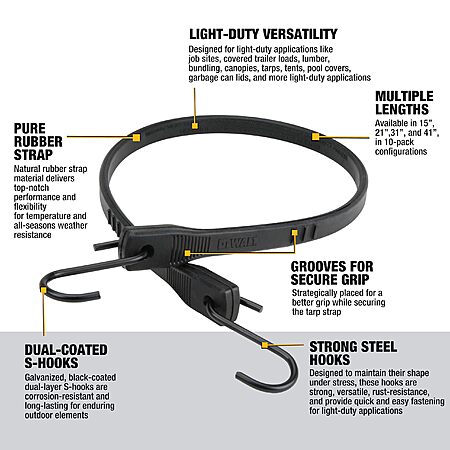 Amazon[amazon.com] has 10-Pack DeWalt 31" Rubber Tarp Straps for $6.07. Shipping is free w/ Prime or on $35+.