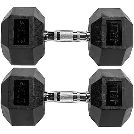 [Regional/MidAtlantic] $65.48: Signature Fitness Rubber Encased Hex Dumbbell (45LB Pair) at Amazon