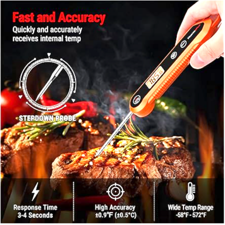 Calibration: Calibration function ensures your instant read thermometer probe maintains accurate readings over time. Designed for longevity, this durable kitchen utensils can also be used as a commercial cooking tool, offering reliable results for a lifetime of use