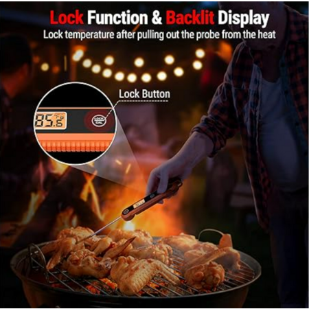 Lock function: Kitchen thermometer can lock the current temp when the probe is removed from food and keep the temp displayed, no more dangerously peering into the oven or grill