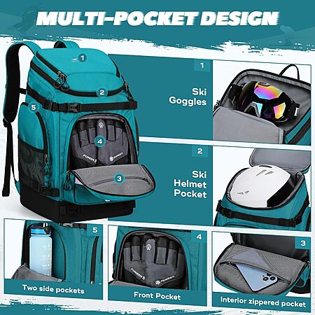 About this item- Spacious and Organized Storage: Ski boot backpack measures 21.66*13*11.4 inches and has multiple compartments to neatly organize ski boots, helmets, gloves, and other gear, snowboard backpack ensures all your essentials are easily accessible and well-protected during transport