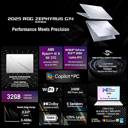 ASUS - ROG Zephyrus G14 14" 3K OLED 120Hz Gaming Laptop - Copilot+ PC - AMD Ryzen AI 9 HX - 32GB RAM - NVIDIA RTX 5080 - 2TB - Platinum White - Open Box $2103.99