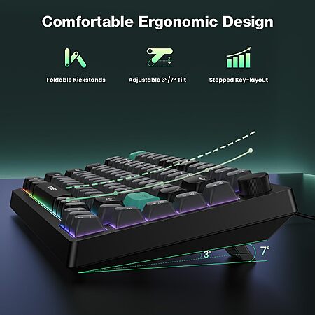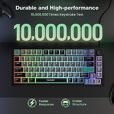 Model: TECKNET Gaming Keyboard, 75% Wired Keyboard, RGB Backlit, 82-Keys with Volume Knob Control, 26 Keys Anti-ghosting, Whisper Quiet Gaming Switch Travel Friendly for Windows Laptop PC Mac-Grey