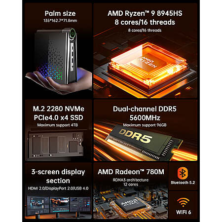 ACEMAGIC S3A Mini PC Barebone: Ryzen 9 8945HS, 2xDDR5, 2x M.2 2280 SSD, 2.5G Lan, USB4 @ $369 + F/S