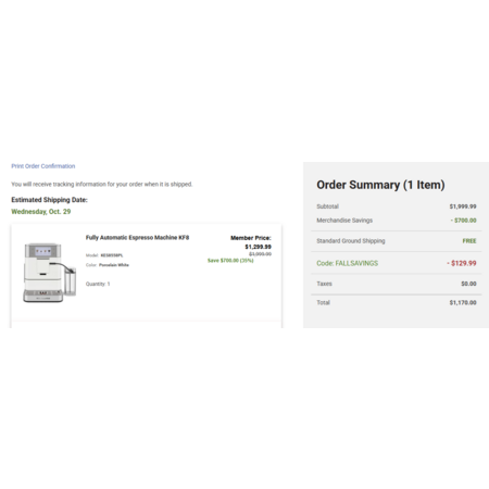 Fully Automatic Espresso Machine KF8- Enjoy all of your favorite espresso beverages at home with the push of a button. Personalize and store your own recipes based on strength, length and temperature for premium handcrafted, quality espresso made to fit your taste.