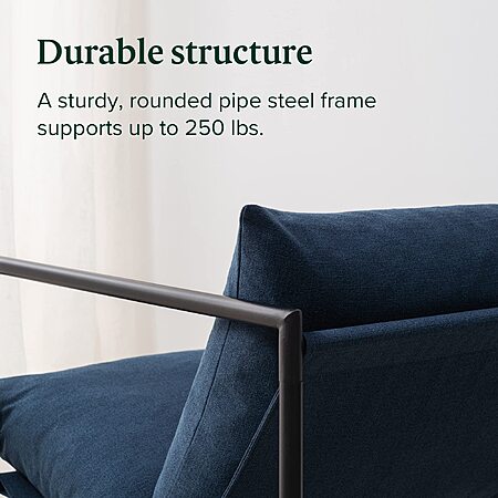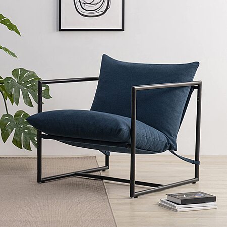 Model: ZINUS Aidan Sling Accent Chair / Metal Framed Armchair with Shredded Foam Cushioning, Navy