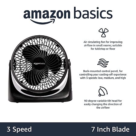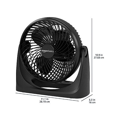 $11:Amazon Basics Air Circulator Fan, Black, 11.1"W x 6.3"D x 10.9"H